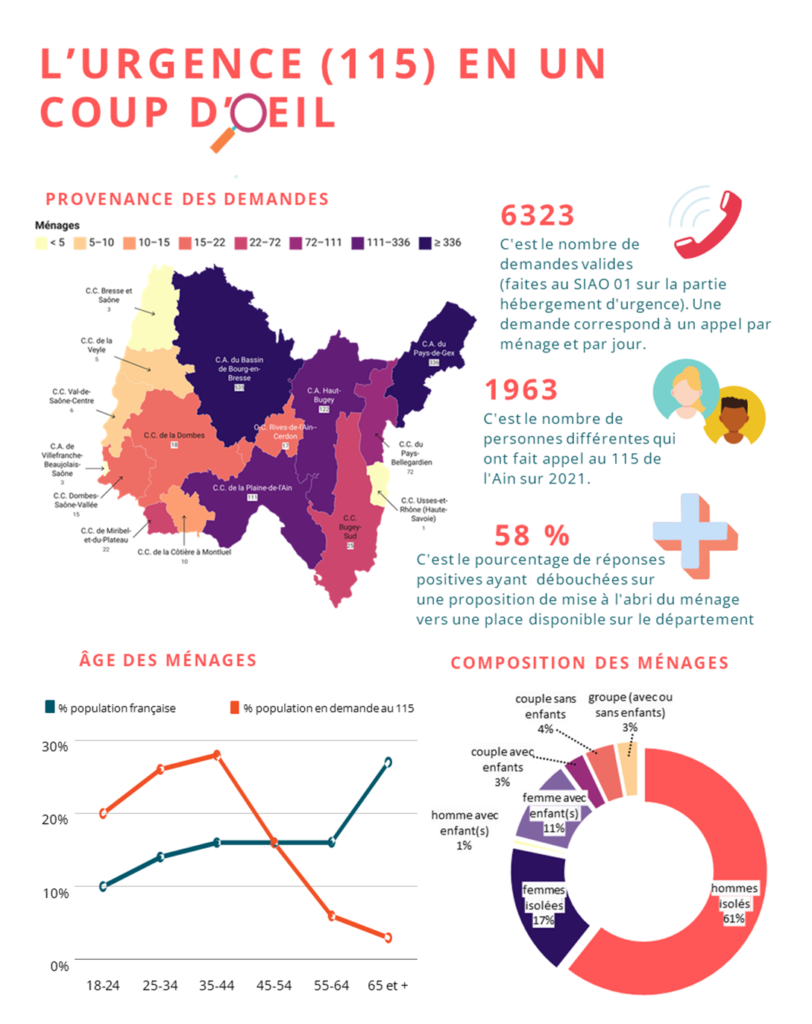 Le 115 est un numéro d’urgence gratuit, il peut être composé sur n’importe quel téléphone fixe ou mobile, même sans crédit. Le 115 est un numéro composable dans toute la France, l’appel est géolocalisé et renvoyé vers le SIAO du département d’appel (ainsi, il faut être physiquement dans l’Ain pour pouvoir contacter le 115 de l’Ain).
